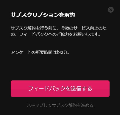 すぐに退会したい場合は「スキップしてサブスク解約を進める」を押してください!!!