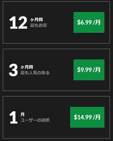 3ヶ月会員-$9.99/月