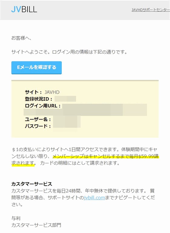 1ドルお試し動画を決済代行会社JVBillで決済しました。