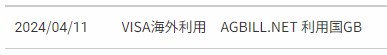 明細には「VISA海外利用AGBILL.NET]と表示されていました。