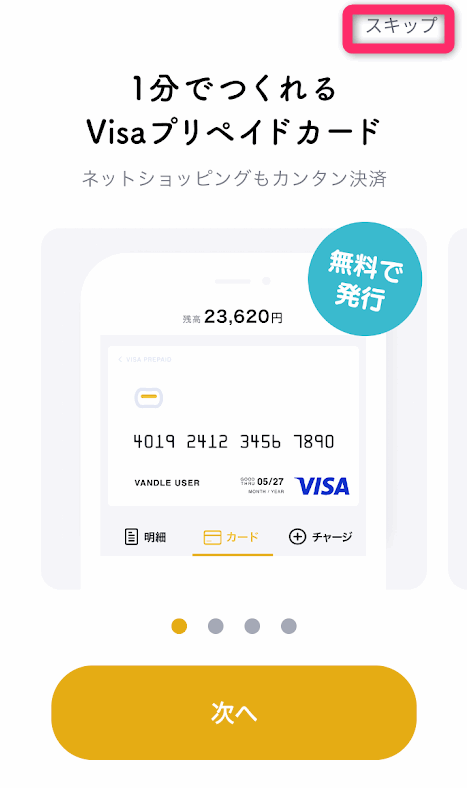 アプリを開いたら右上の「スキップ」をタップ!!!