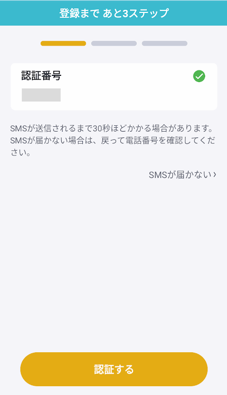 SMSで届いた数字を入力し、「認証する」をタップ。